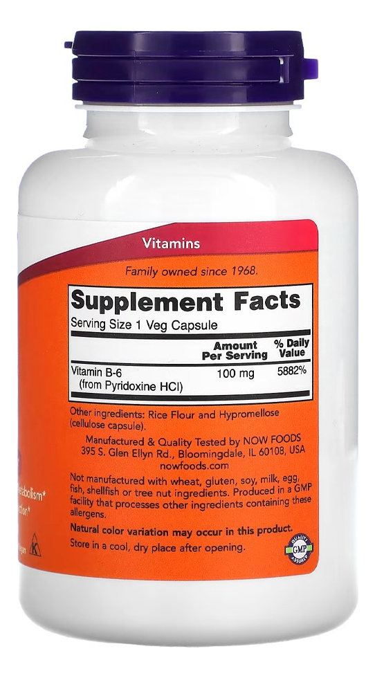 Vitamina B-6 100mg Now Foods 250 Cáps Importado