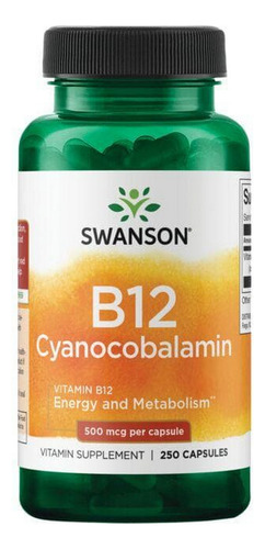 Vitamina B12 Cianocobalamina 500 Mcg 250 Cápsulas Da Swanson
