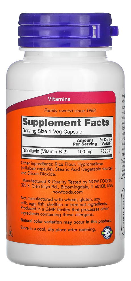 Vitamina B-2 100mg Now Foods Riboflavina 100 Cáps Produto Importado Original
