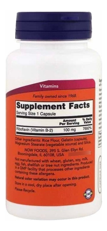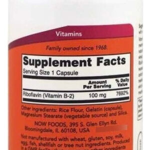 Vitamina B2 Riboflavina 100mg 100 Caps Now Foods