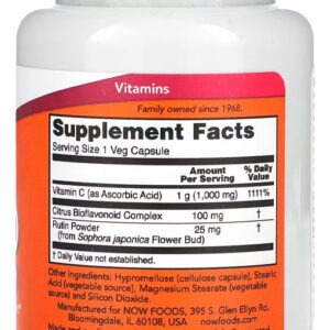 Principal Suporte: A Vitamina C-1000 da Now Foods é formulada para oferecer suporte nutricional avançado, com cada cápsula contendo 1000 mg de Vitamina C, essencial para diversas funções corporais.