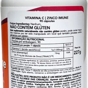 C-1000 Zinc Immune da Now Foods é um suplemento composto por Vitamina C 1000mg e Zinco 15mg, auxilia no fortalecimento da imunidade, ossos e articulações, saúde da pele, produção de colágeno, absorção de ferro e equilíbrio hormonal.