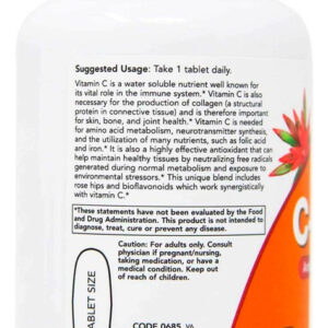 Vitamina C 1000mg e Rosa Mosqueta Now Foods 100Tabls/Proteção Antioxidante/Bioflavonóides. A Vitamina C, Rosa Mosqueta e Bioflavonóides da Now Foods, disponível em cápsulas de 1000mg, é uma substância indispensável para proteção antioxidante, atuando na produção de colágeno, fornecendo suporte aos ossos e articulações, além de ser necessária para o metabolismo de aminoácidos, síntese de neurotransmissores e a utilização de muitos nutrientes, como ácido fólico e ferro. A C-1000 da Now Foods fornece uma dosagem potente desta vitamina chave e é misturada com Rose Hips e Bioflavonóides, que são sinérgicos naturais da vitamina C. Apenas uma dose por dia e você pode complementar sua dieta com a quantidade necessária destes importantes nutrientes. Outros ingredientes: Celulose microcristalina, revestimento vegetariano e estearato de magnésio (fonte vegetal). Fabricado sem trigo, glúten, soja, leite, ovo, peixe, marisco ou ingredientes de nozes. Recomendações de uso: Tome 1 cápsula por dia. Cuidados: Apenas para adultos. Busque orientação antes de utilizar este produto se estiver grávida ou amamentando. Mantenha fora do alcance de crianças. Armazenamento: Armazenar em local seco e fresco após a abertura. Podem ocorrer variações naturais de cor neste produto. Conteúdo do frasco: 100 Tablets Vegetarianos.