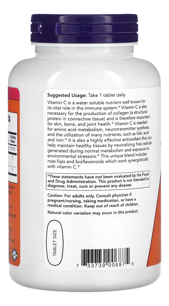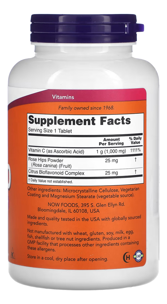 Vitamina C 1000mg e Rosa Mosqueta Now Foods 250Tabls – Importado