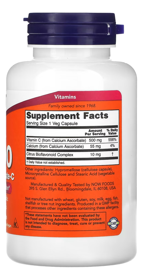 Vitamina C-500 Cálcio Ascorbato-c Nowfoods 100vegcap Eua/usa