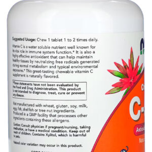 Suporte Vital para o Sistema Imunológico: Com 100 tablets de Vitamina C-500 Now Foods, este produto oferece um suporte essencial para fortalecer o sistema imunológico, ajudando a proteger o corpo.