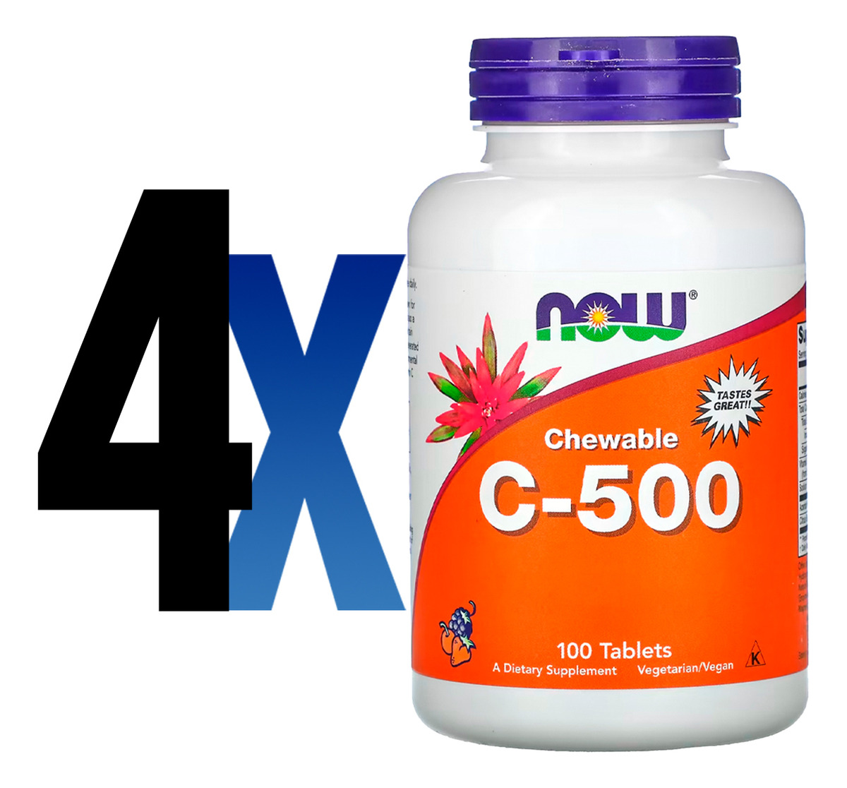 Vitamina C-500 Now Foods 100 Tablets Sabor Cereja