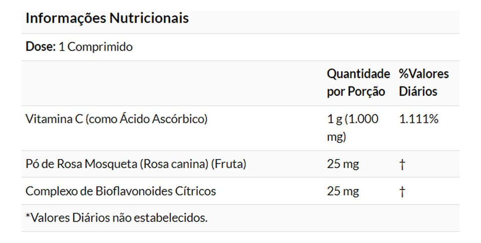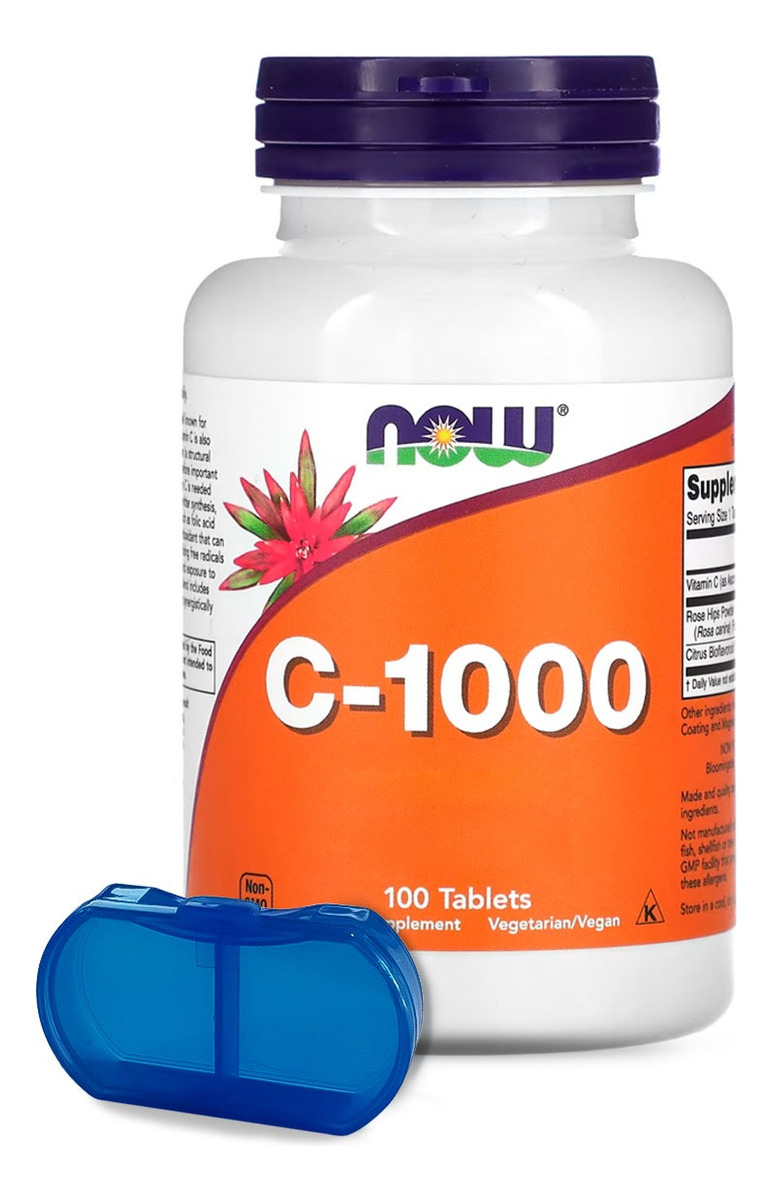 Vitamina C 1000mg e Rosa Mosqueta Now Foods 100Tabls/Proteção Antioxidante/Bioflavonóides/Importado A Vitamina C, Rosa Mosqueta e Bioflavonóides da Now Foods, disponível em cápsulas de 1000mg é uma substância indispensável para proteção antioxidante, atuando na produção de colágeno, fornecendo suporte aos ossos e articulações, além de ser necessária para o metabolismo de aminoácidos, síntese de neurotransmissores e a utilização de muitos nutrientes, como ácido fólico e ferro. A C-1000 da Now Foods fornece uma dosagem potente desta vitamina chave e é misturada com Rose Hips e Bioflavonóides, que são sinérgicos naturais da vitamina C. Apenas uma dose por dia e você pode complementar sua dieta com a quantidade necessária destes importantes nutrientes. Outros ingredientes: Celulose microcristalina, revestimento vegetariano e estearato de magnésio (fonte vegetal) . Fabricado sem trigo, glúten, soja, leite, ovo, peixe, marisco ou ingredientes de nozes. Recomendações de uso: Tome 1 cápsula por dia. Cuidados: Apenas para adultos. Busque orientação antes de utilizar este produto se estiver grávida ou amamentando. Mantenha fora do alcance de crianças. Armazenamento: Armazenar em local seco e fresco após a abertura. Podem ocorrer variações naturais de cor neste produto. Conteúdo do frasco: 100 Tablets Vegetarianos Acompanha 1 Porta Cápsulas, Validade Longa.30/11/2023