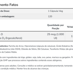 2. Conveniente e Eficaz: Cápsulas práticas de 25mcg (1000 UI) oferecem uma forma conveniente e eficaz de incorporar a Vitamina D na sua rotina diária.