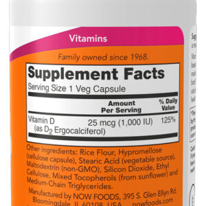 Vitamina D 25mcg Now Foods 120 Cáps Importado