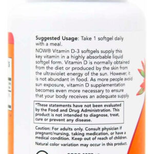 Cada softgel é cuidadosamente formulado para ser livre de glúten, orgânico e vegano, atendendo a uma variedade de preferências alimentares e estilos de vida. Com 240 softgels por embalagem, você terá uma fonte confiável de vitamina D3, essencial para a manutenção de uma estrutura óssea saudável e uma resposta imunológica eficaz.