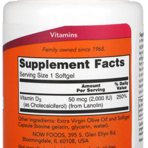Vitamina D-3 2000iu da Now Foods é um suplemento nutricional essencial para o bom funcionamento do corpo. Este suplemento contém 2000iu de Vitamina D-3 por softgel, sendo fácil de tomar;