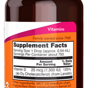 Vitamina D-3 Líquida 25mcg Now Foods 30ml Importado