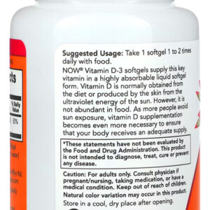 O Now Foods Vit D-3 400 IU é um suplemento de alta potência que fornece vitamina D3, uma vitamina essencial para o corpo humano. Este frasco contém 180 SoftGels para um fornecimento duradouro e conveniente;