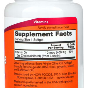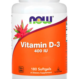 Vitamina D-3 Now Foods 400 IU 180 Caps Softgels – Importado
