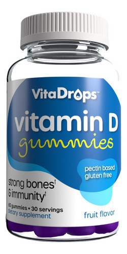 Gomas de vitamina D Vitadrops, um suplemento fácil de tomar com um sabor delicioso e natural de frutas. As vitaminas gomosas estão se tornando cada vez mais populares. Eles são fáceis de consumir, têm um sabor agradável e também podem aliviar a carga de pílulas de pessoas com um regime de medicação já complexo.