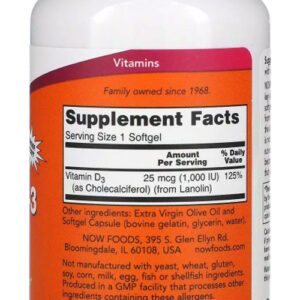 Vitamina D3 1.000ui Now Foods Vit D-3 360 Softgels