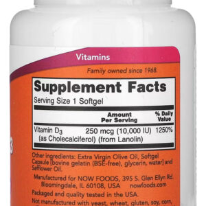 Vitamina D3 – Alta Potência 10.000 Ui 120 Cápsulas Now Foods