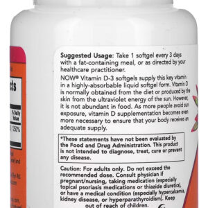 As cápsulas softgel de Vitamina D-3 da NOW fornecem essa vitamina-chave em uma forma de cápsula líquida altamente absorvível. A vitamina D é normalmente obtida pela alimentação ou produzida pela pele a partir da energia ultravioleta do sol. No entanto, não é abundante em alimentos. À medida que mais pessoas evitam a exposição ao sol, a suplementação de vitamina D se torna ainda mais necessária para garantir que seu corpo receba um suprimento adequado.