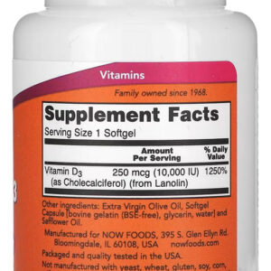 Vitamina D3 10000iu 120 Softgels Importado 5un Now Foods