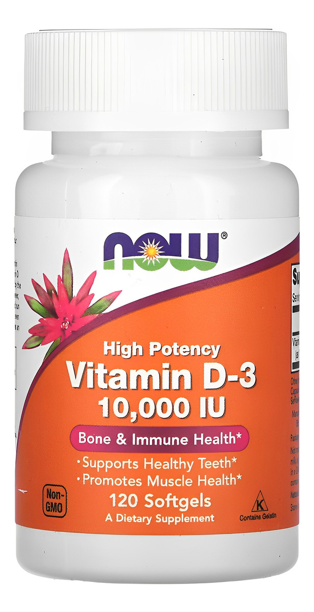 Vitamina D3 10000IU Alta potência Now 120 Softgels