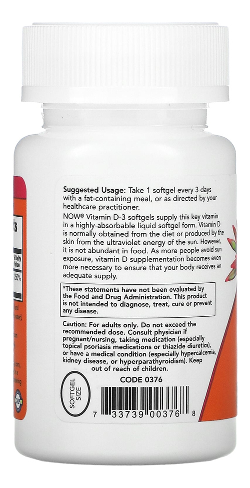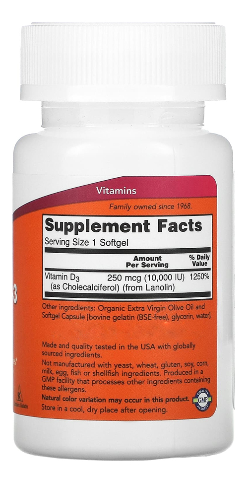 Vitamina D3 10000iu Alta Potencia Now 120 Softgels 3un