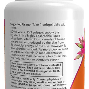 Vitamina D3 2000 IU Alta Potência Now Foods 120Softgls – Importado