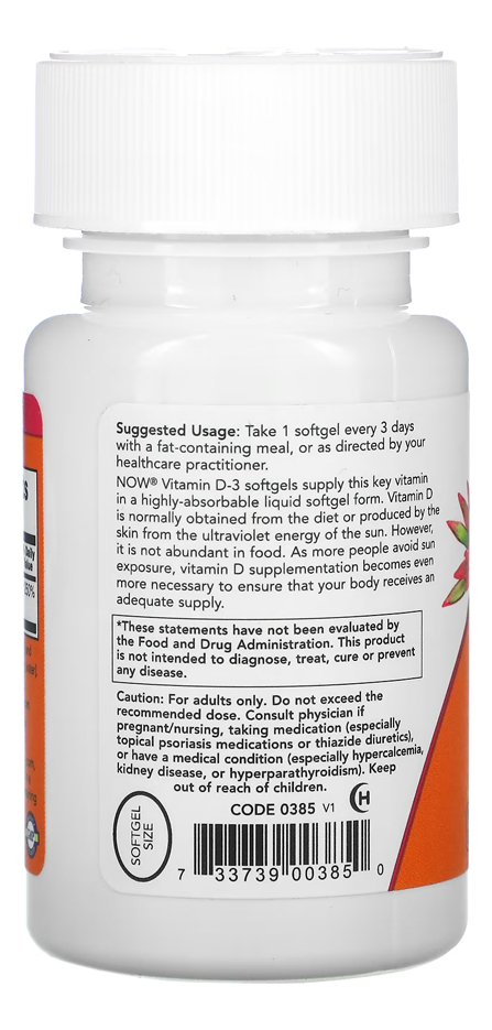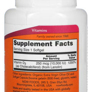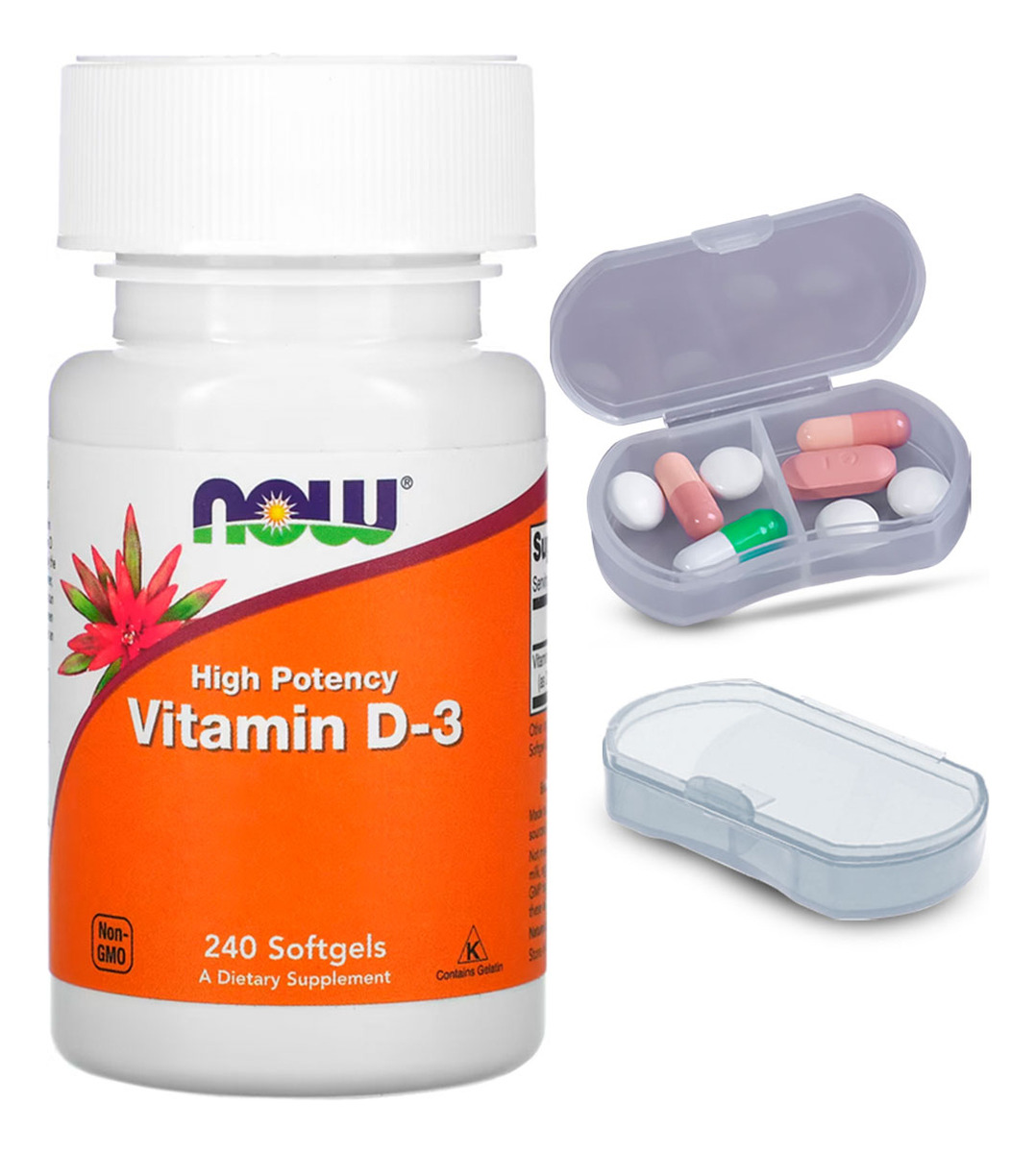 Vitamina D3 250mcg Now Foods 240 Softgels + Porta Cápsulas
