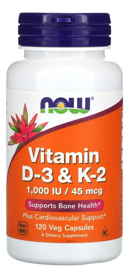 Vitamina D3 25mg com Vitamina K2 45mg Now Foods 120 Cápsulas Vegetarianas