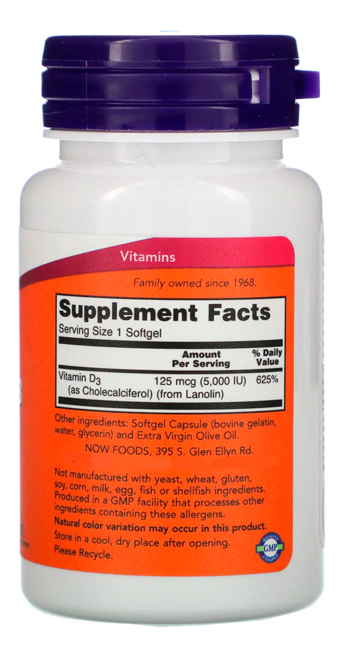 Vitamina D3 5000IU Alta potencia Now 120 Softgels – Importado A Vitamina D geralmente é obtida a partir da dieta ou produzida pela pele a partir do sol. No entanto, não é abundante em alimentos e cada vez mais as pessoas evitam a exposição ao sol. Assim, a suplementação de vitamina D se torna ainda mais necessária para garantir que o organismo receba um suprimento adequado deste nutriente. De acordo com estudos, a vitamina D pode auxiliar no tratamento de câncer, infertilidade, auxilia o sistema imunológico, memória, manutenção de força muscular, prevenção de acidente vascular cerebral, redução de inflamação e inúmeros outros benefícios. • MANUTENÇÃO DA RESISTÊNCIA ÓSSEA • AUXILIA NO SISTEMA IMUNOLÓGICO • MELHORA DA MEMÓRIA • FORÇA MUSCULAR • AUXILIA A PRODUÇÃO DE TESTOSTERONA • MELHORA DA COMPOSIÇÃO CORPORAL VALIDADE LONGA.