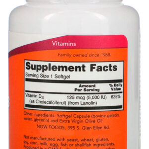 Vitamina D3 5000iu Alta Potencia Now 120 Softgels 4un
