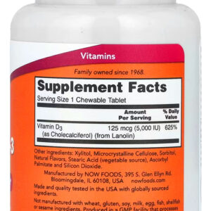 Vitamina D3 5000IU Now 120 Chewable Mastigável Produto Importado