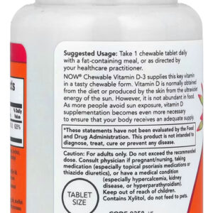 4. Facilidade na Rotina Diária: Incorporar a Vitamina D3 da Now em sua rotina é incrivelmente simples. Graças à sua apresentação mastigável, você pode consumi-la a qualquer hora, sem necessidade de água, tornando-a perfeita para um estilo de vida ativo.
