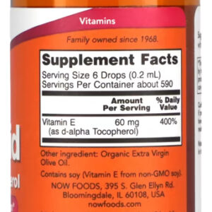 Vitamina E Now Foods 118ml D-Alpha Tocoferol Produto Importado
