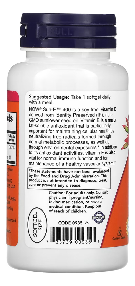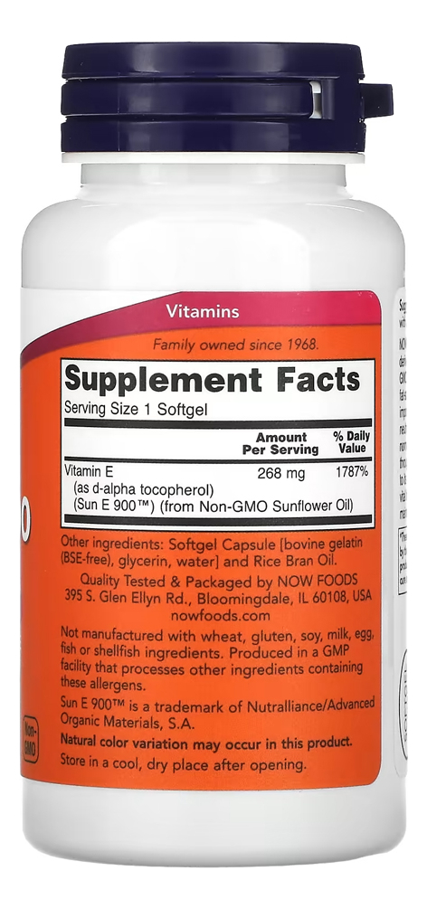 Vitamina E Sun-E 400 268mg Now Foods 60Soft Produto Importado