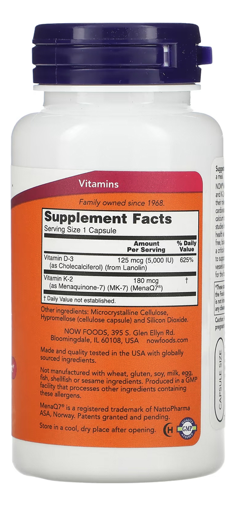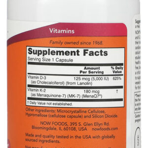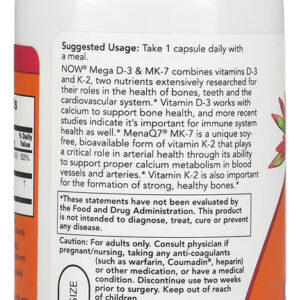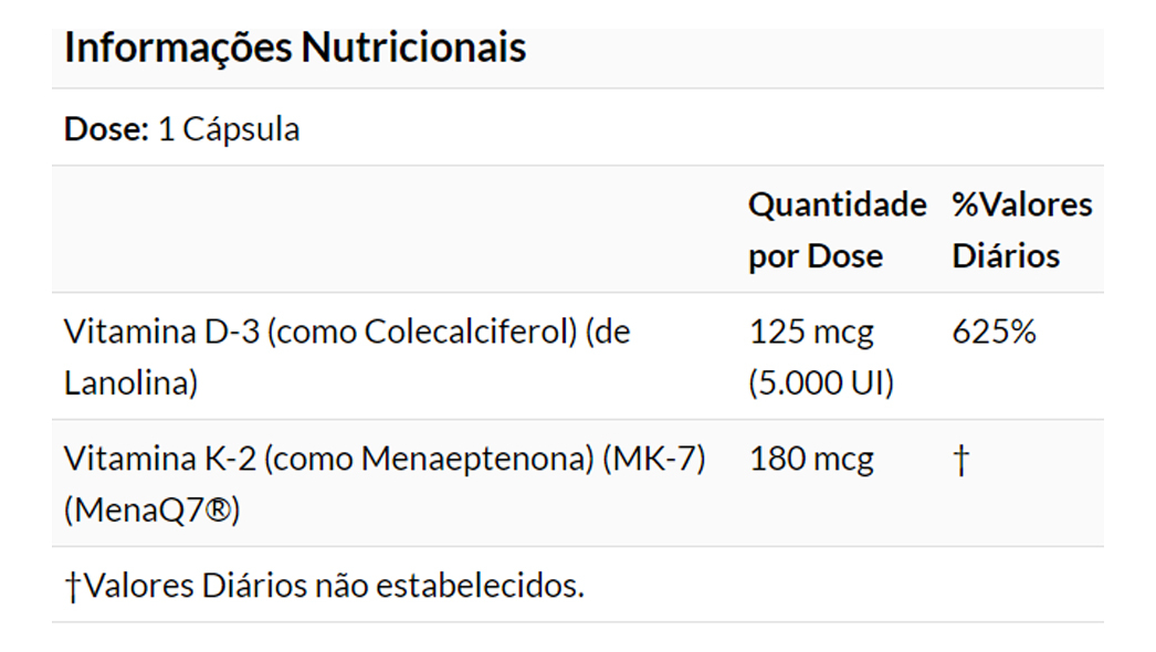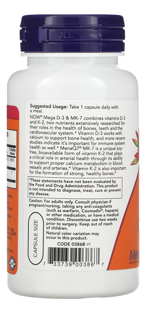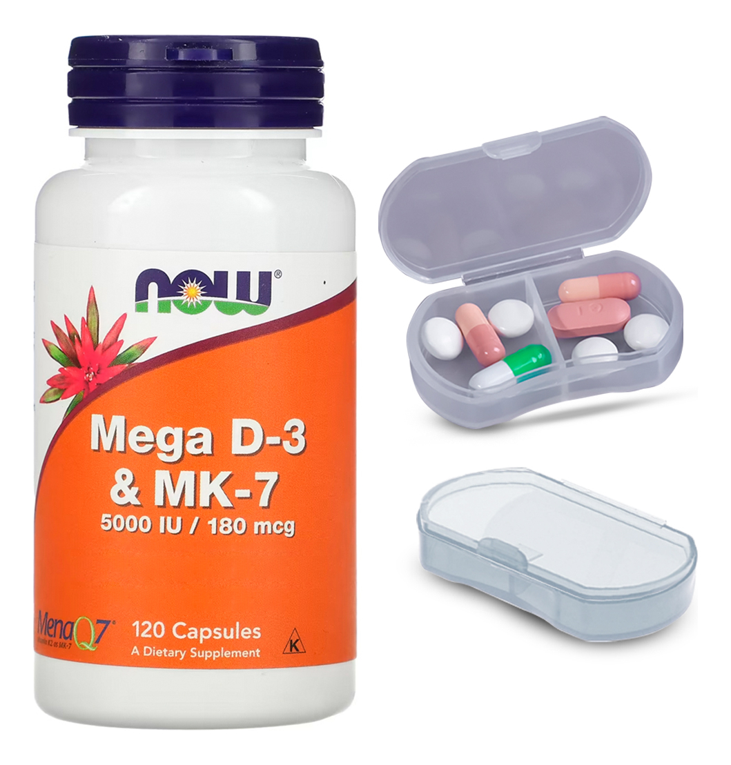 Kit Vitamina Mega D-3 e MK-7 Now Foods 120 Caps + Porta Cápsulas Suporte Principal: A combinação de Vitamina D-3 e MK-7 em uma única cápsula torna este suplemento da Now Foods é uma escolha excepcional para auxiliar no equilíbrio e vitalidade do dia a dia, sem a necessidade de múltiplos suplementos. Formato Veg Caps Conveniente: Este suplemento é apresentado em cápsulas vegetais, facilitando a ingestão e tornando-o ideal para vegetarianos. As Veg Caps são projetadas para uma absorção otimizada, garantindo que você obtenha o máximo de cada dose. Importado com Disponibilidade Imediata: Este suplemento é importado pela confiável Now Foods, uma marca internacionalmente reconhecida por sua qualidade. Está disponível para pronta entrega, permitindo que você comece a utilizá-lo rapidamente. Porta Cápsulas com Duas Repartições: O kit também inclui um porta-cápsulas prático, dividido em duas seções internas. Isso permite uma organização eficaz e separada de diferentes tipos de cápsulas ou pílulas. Composição Distinta: Cada cápsula contém uma dose potente de Vitamina D-3 e Vitamina K2 na forma de MK-7, uma combinação sinérgica que otimiza a eficácia do suplemento. Esta formulação é cuidadosamente elaborada para garantir uma experiência de suplementação de alta qualidade. VALIDADE LONGA