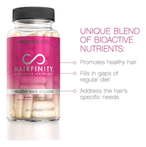 • Suplementos de Hairfinity – Adequado para mulheres e homens. Preenche as lacunas deixadas pela sua dieta regular para fornecer ao seu corpo a nutrição necessária para cabelos saudáveis.
