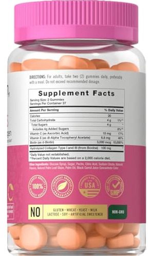 Cabelo, pele e unhas: contém biotina e colágeno, além de vitaminas C e E para suporte total de beleza*