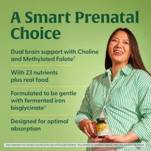Multivitamínico pré-natal diário com 23 nutrientes essenciais, além de alimentos reais como brócolis, cenoura e laranja para apoiar a nutrição ideal da mãe e do bebê Formulado por médico para absorção ideal de nutrientes: Inclui formas metiladas de folato e B12, além de 300 mg de colina para apoiar o cérebro do bebê e o desenvolvimento da medula espinhal A colina é fundamental para a memória e a cognição ao longo da vida, apoia o desenvolvimento do cérebro do bebê e um sistema nervoso saudável e é necessária para o funcionamento normal do cérebro de todas as células