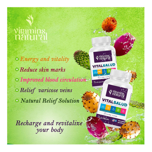 • ?APOIA A SAÚDE ÓSSEA – Nosso produto, Vital Salud, é enriquecido com NOPAL, um ingrediente natural conhecido por sua alta concentração de minerais essenciais como potássio, cálcio e magnésio. Esses minerais trabalham juntos para promover ossos fortes e saudáveis, garantindo o seu bem-estar geral.