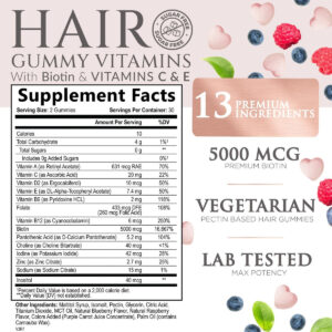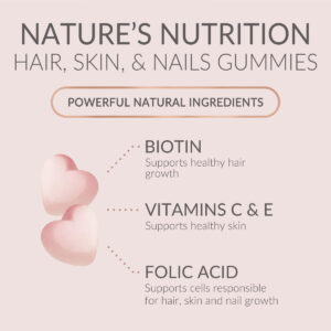 Vitaminas de goma de cabelo sem açúcar da Nature's Nutrition com biotina Vitaminas de goma para cabelo: as gomas de cabelo fornecem nutrição para ajudar a sustentar uma base para cabelos mais longos, fortes e bonitos; com essas gomas de biotina, você não precisa se preocupar em engolir cápsulas ou lidar com efeitos colaterais negativos, como distúrbios digestivos. As gomas ajudam a apoiar o crescimento do cabelo com biotina, vitamina E e C Suplemento saboroso de sabor de frutas vermelhas para homens e mulheres por mais tempo, mais fortes e bonitas Cabelo e unhas Por que escolher a Nature's Nutrition: Qualidade certificada e confiável: nosso extra gomas de biotina fortes foram fabricadas seguindo diretrizes estritas de cGMP e certificadas em laboratório terceirizado quanto à pureza e qualidade. Formulado para mulheres e homens: especialmente formulado para sustentar cabelos, pele e unhas em mulheres e homens. – Suporte capilar sem açúcar com biotina de alta potência: nossas vitaminas capilares contêm 5000 mcg de biotina por porção. Essenciais para a saúde geral do cabelo, é a melhor escolha entre as vitaminas para o crescimento capilar – Suporte nutricional com vitaminas para o cabelo: nossas gomas sem açúcar são enriquecidas com vitaminas E e C, vitaminas essenciais para o cabelo que ajudam na saúde do couro cabeludo e colágeno produção, crucial para a força do cabelo e a aparência da pele – Benefícios de beleza além do cabelo: A vitamina capilar abrangente que também auxilia na hidratação da pele e na força das unhas; nossa fórmula balanceada nutre a beleza de dentro para fora, perfeita para sustentar o cabelo natural – Vitamina capilar conveniente e saborosa: aproveite a conveniência e o sabor de nossos ursinhos de goma, uma maneira deliciosa de incorporar vitaminas essenciais para o crescimento capilar em sua rotina diária; cada frasco foi projetado para apoiar a saúde do cabelo, da pele e das unhas, tornando-o a escolha ideal para quem procura vitaminas para o cabelo – Vitaminas para o cabelo Para mulheres: urso anjo, urso, beleza, melhor biotina, 5000 mcg de biotina complexo de aumento de queratina de colágeno, azul mais rápido, c cabello, semelhante às cápsulas gelatinosas, comprimidos d e el fuller gomitas grow grow gummies, suplementos de goma, saúde, lovely la men mujer, articulações, cabelo, unhas, unhas, suporte à pele, apoia a natureza, natureza, nutrição, para produtos, açúcar mais forte, meses, dias, ultra fornecem vitamina vitamina vitaminas, vitaminas, mulheres não