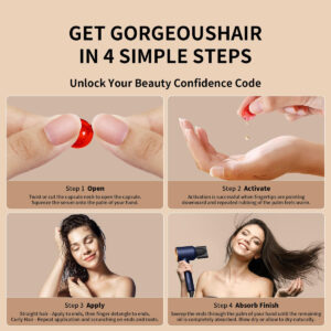 Product name: Poeroes advanced hair care oil Product features: — Powerful hydrating and repairing formula for damaged hair. — Contains argan, avocado, and Moroccan oils to restore moisture and reduce frizz. — Vitamins A, C, E, and B5 provide essential nutrients for strong hair. — Use as a leave-in conditioner after shampooing for silky, healthy-looking strands. — Lightweight, absorbs quickly without residue, protects hair from heat styling tools. — Suitable for all hair types, tames frizz and flyaways, adds shine, and makes hair healthier with continued use. Product parameters: — Quantity: 50 leave-in serum capsules — Ingredients:Vitamin A,Vitamin C,Vitamin E,Vitamin B5,Biotin,Sodium.Other Ingredients: Water, Moroccan Oil,Macadamia Oil,Avocado Oil. — Directions After shampooing, open one capsule and apply to hair. Leave on for 2-3 minutes, then allow hair to absorb or blow dry and style. – Nourishing Formula:Ingredients:Vitamin A,Vitamin C,Vitamin E,Vitamin B5,Biotin,Sodium.Other Ingredients: Water, Moroccan Oil,Macadamia Oil,Avocado Oil. A blend of c, Avocado, and Moroccan oils plus Vitamins A, C, E and Pro B5 deeply conditions hair while fighting frizz. – Hair Vitamins: Capsules are enriched with vitamins to provide nutrients to the hair. Vitamins A, C, E and Pro B5 in essential oils nourish the scalp and strengthen hair from root to tip for healthier looking hair. – Leave-In Conditioner: Light-textured conditioning oils are quickly absorbed into the hair, hydrating, softening and protecting each strand without weighing it down or leaving a residue. – Frizz Fighter: Gentle enough for daily usethe products made without parabens , sodium chloride, sulfates, harsh chemicals, and residues. Smooths the hair cuticle to lock in moisture and reduce static, leaving hair silky, shiny . – Convenient Capsules: The capsule formula is easy to use, simply place a few drops of the concentrated oil in the palm of your hand and its easy to apply and carry around. 50 capsules will nourish your hair for a longer period of time.