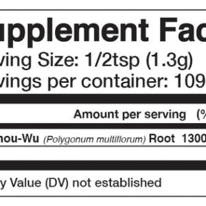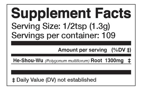 • Raiz Sagrada Adaptogênica – Comumente conhecida como He Shou Wu no Brasil e Raiz Fo Ti na América do Norte, esta erva adaptogênica tem sido usada há muito tempo para promover cabelos saudáveis ??e envelhecimento.*