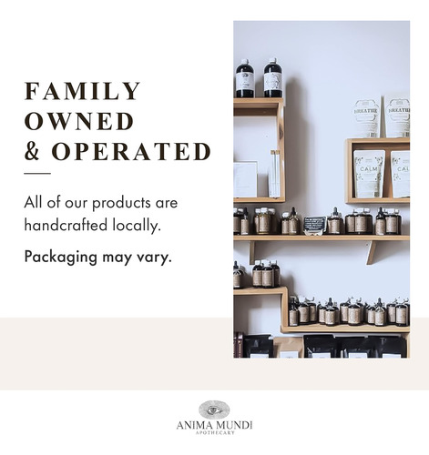 • Formulado por Herbalistas Clínicos no Brooklyn – Anima Mundi se dedica a fazer remédios vibrantes que honram os princípios de harmonia e formulação milenar. Nosso Boticário é composto de plantas orgânicas, artesanais e cultivadas eticamente que nos ajudam a criar suplementos de beleza premium e vitaminas para a saúde feminina.