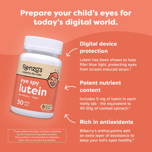 – Vitaminas derretidas para crianças: as vitaminas solúveis sem açúcar da Renzo são uma forma saudável, derretida e deliciosa de as crianças tomarem suas vitaminas; diga adeus às vitaminas cheias de açúcar ou às nojentas líquidos Apoia a saúde ocular em crianças: cada comprimido derretido contém luteína FloraGLO e extrato de mirtilo, projetados para apoiar a saúde ocular das crianças, ajudando a filtrar o azul leve para reduzir a tensão induzida pela tela; use diariamente para proteção contínua nesta era digital*