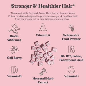 grow hair hair grow hair growth for men hair growth vitamins hair growth vitamins for men hair growth vitamins for women hair tamin hair vitamin hair vitamins for men hair vitamins for thicker hair growth hair vitamins for women vitamin for hair growth for women vitamin hair vitamins for hair growth long hair chewable long hair growth products healthy hair vitamins healthy hair products healthy hair chewable chewable healthy hair adult chewable stronger hair supplements vitamins for healthier hair Hair chewable vitamins hair chewable hair chewable for faster hair growth hair chewable vitamins for women chewable hair vitamins chewable hair Hair growth healthier, hair stronger hair supplements for stronger hair stronger hair vitamins chewable vitamins for hair growth chewable vitamins for hair chewable vitamins for hair growth and thickness – The Perfect Solution: If you are looking for an effective and delicious alternative to vitamin gummies and pills, the Chewsy Beautiful Hair fruity chews are the way to go! Healthy, Fast-Growing Hair. A powerful blend of 13 Supernutrients delivered in candy-style chew is everything you need to promote stronger, healthier hair from the inside out in one delicious tasting chew! – These naturally flavored Sweet Raspberry chews contain all the key nutrients you need to nourish your hair from within, to make it stronger and fuller, including Biotin, Vitamins A, Vitamin B6,Vitamin B12, Vitamin C, Vitamin D3, Folate, Pantothenic Acid, Horsetail Herb Extract, MSM, Schisandra Fruit Powder and Goji Berry! – Safe Formula: The Chewsy beautiful hair vitamins are made with carefully selected, third party tested ingredients, without artificial colors, flavors, sweeteners, dairy, soy. Also, the formula is vegetarian–friendly, non-GMO, and gluten-free. Includes organic tapioca syrup, organic raw cane sugar and organic palm oil. – Delicious and Effective: Soft and juicy, these Beautiful Hair chews will burst with an intense fruity flavor from the first bite. These candy-style chews have a soft texture and release a delicious fruity taste that will satisfy your sweet cravings. – Smart Packaging: What makes Chewsy truly amazing is the fact that every chew comes individually wrapped, which is a more hygienic and safer alternative. In comparison with traditional gummies, our chews are concentrated and deliver in one dose the equivalent of 2-6 gummies, so our 30-day supply pack is enough to help you achieve your goals.