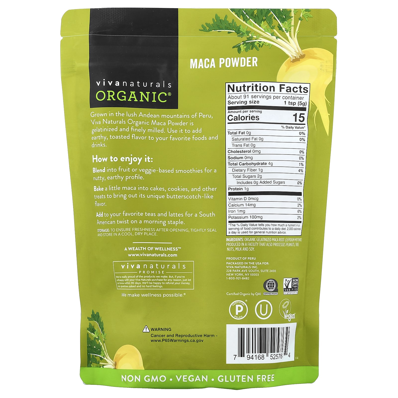 Viva Naturals Maca-Peruana Gelatinizada Orgânica em Pó 454 g (1 lb) – Viva Naturals Suplementos Ervas Maca.