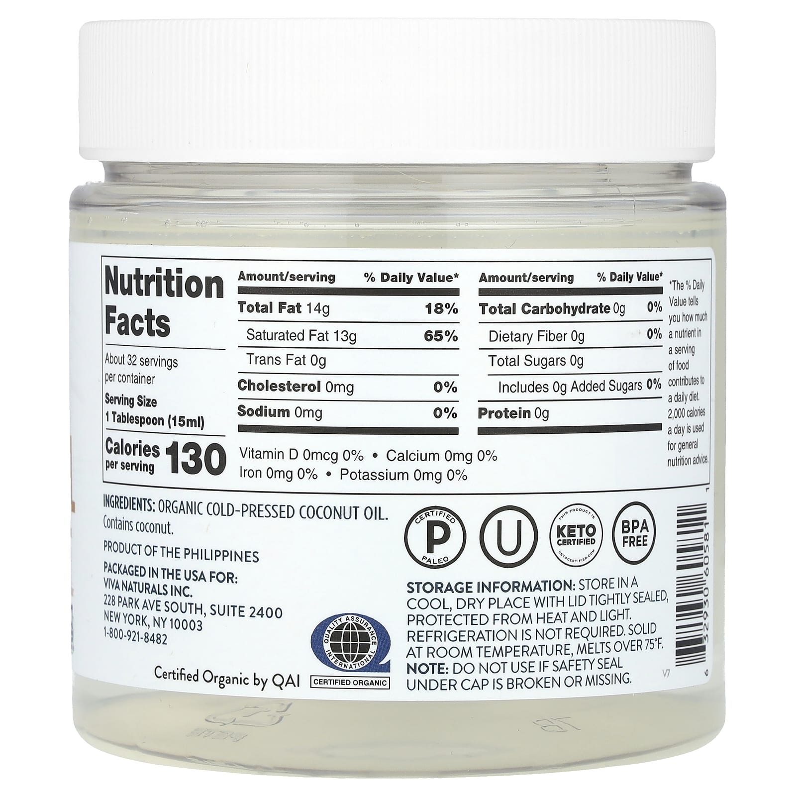 Viva Naturals Óleo de Coco Extravirgem Orgânico 473 ml (16 fl oz) – Viva Naturals Banho e Cuidados Pessoais Cuidados com o Corpo Óleos corporais e de massagem Óleo Corporal de Coco Coleções de Produtos Produtos com Coco.