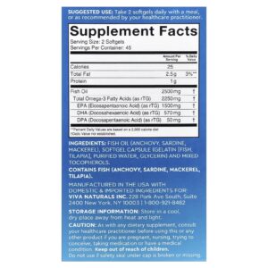 Viva Naturals Ômega-3 de Óleo de Peixe Dosagem Tripla 2.500 mg 90 Cápsulas Softgel – Viva Naturals Suplementos Ômegas e Óleos de Peixe (EPA/DHA) Ômega 3 e Óleo de Peixe.