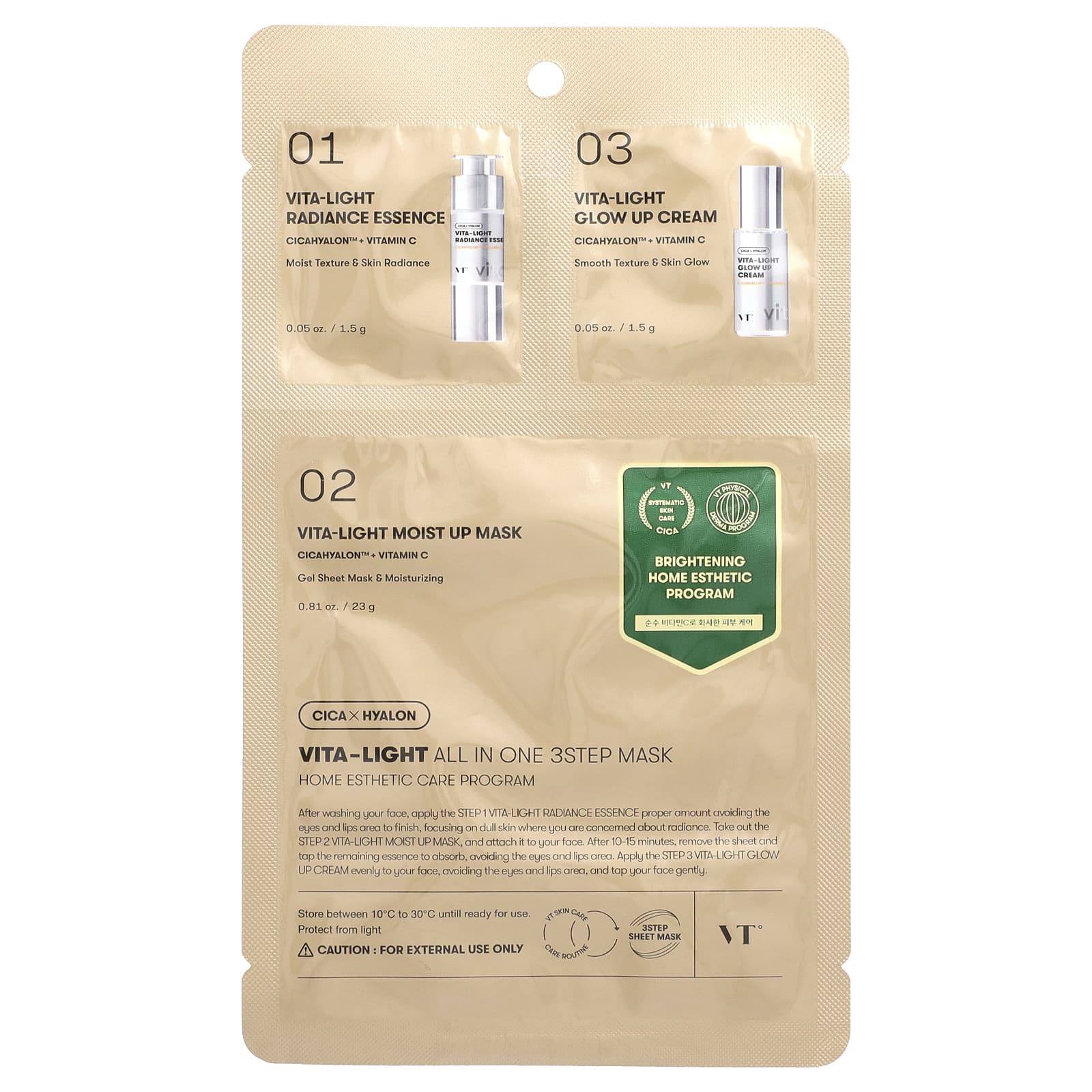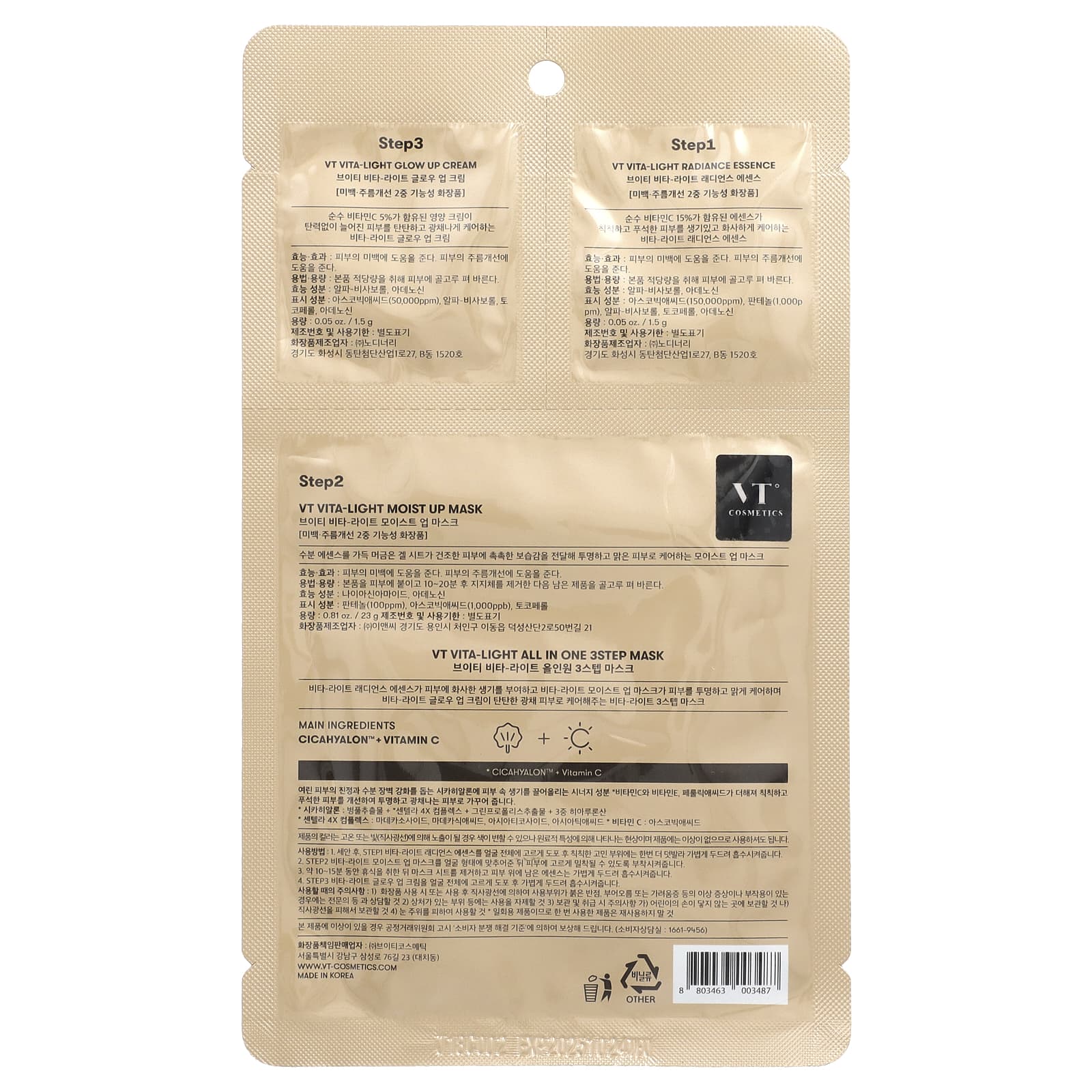 VT Cosmetics Máscara de Beleza em 3 Etapas All In One Vita-Light Kit com 3 Unidades – VT Cosmetics Beleza Máscaras Faciais de Beleza Máscaras Faciais Máscaras em folha K-Beauty.